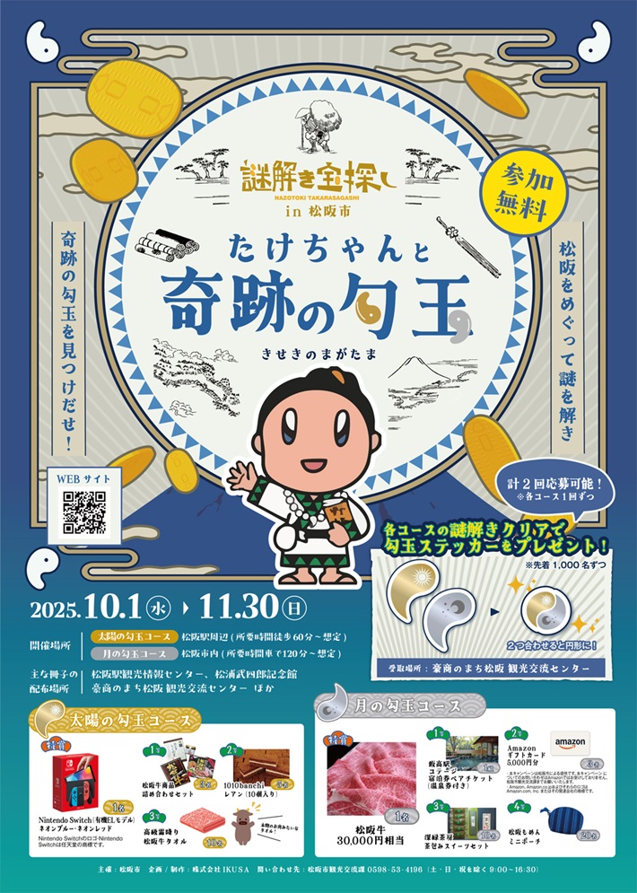 謎解き宝探しin松阪~たけちゃんと奇跡の勾玉(まがたま)~開催!!