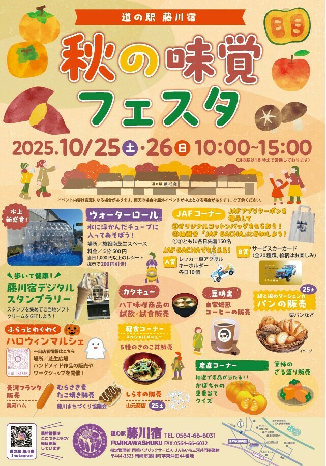 道の駅藤川宿 秋の味覚フェスタ JAFブース出展(愛知県岡崎市:10月25日・26日開催)【東海北陸 ワクワク】