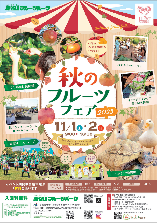 東谷山フルーツパーク 秋のフルーツフェア JAFブース出展(愛知県名古屋市守山区:11月1日開催)【東海北陸 ワクワク】