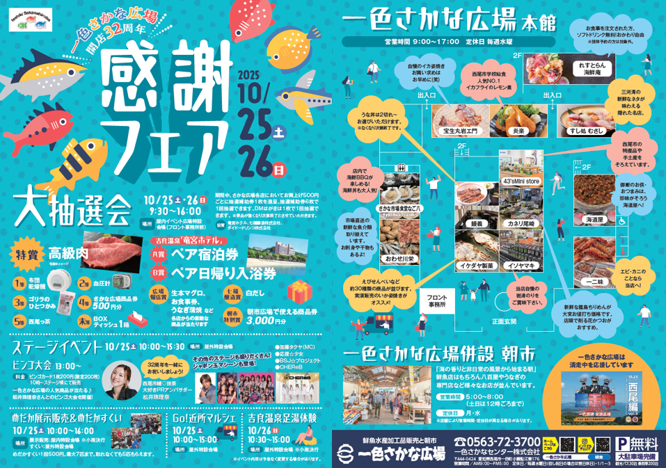 2025年10月25日(土)、26日(日)一色さかな広場開店32周年感謝フェア「大抽選会」を開催