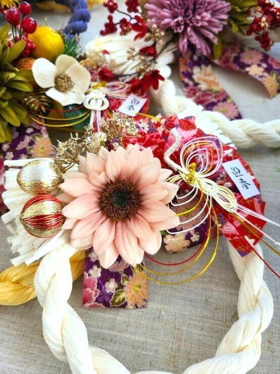 本物のお花のように美しく、長く飾って楽しめる「アーティフィシャルフラワー(上質な造花)」を使って、しめ縄飾りを作りませんか?花の色や配置は自分で選べるので、世界にひとつだけの華やかなしめ縄が完成します♪初心者の方でも安心してご参加いただけます!