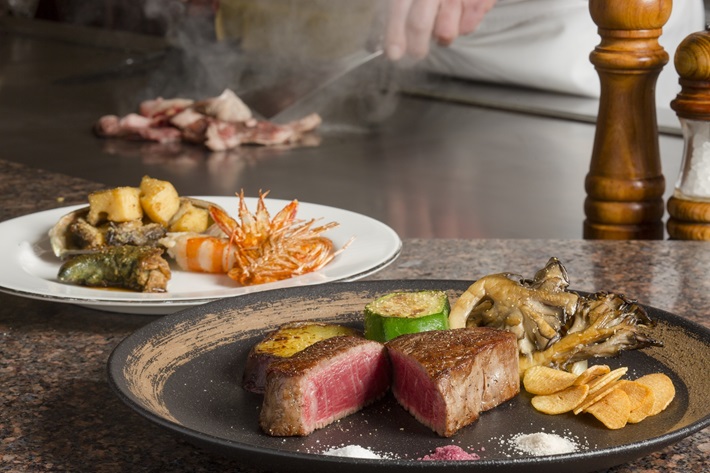落ち着いた雰囲気の店内で、上質なステーキや新鮮な魚介類のコースをお届けします。シェフの手さばきとともに鉄板焼の醍醐味をお楽しみください。