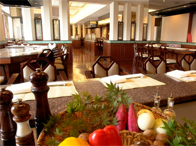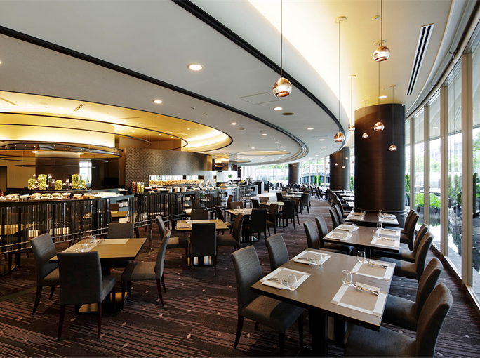 目の前で調理が行われるライブキッチンと、季節替わりの料理や種類豊富なデザートがビュッフェスタイルでお楽しみいただけるダイニング。家族・友人とのお食事、会社のお集まりなど、さまざまなシーンで楽しめる食空間です。