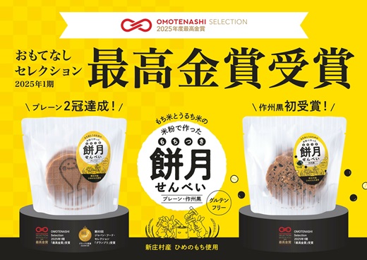 餅月せんべいはおもてなしセレクション最高金賞(2025年Ⅰ期)を受賞しました!