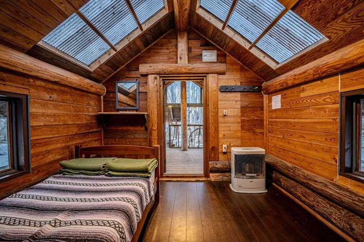 宿泊サイトは、フリーサイトとバンガローがあり、ペットと一緒に過ごしていただけます。炊事場、トイレ、シャワーなど共用設備のほか、貸切のサウナ施設があり、夏は場内にある小川にダイブ!冬は白い雪の中にダイブ!など、自然の中でアウトドアを楽しむことが出来ます。