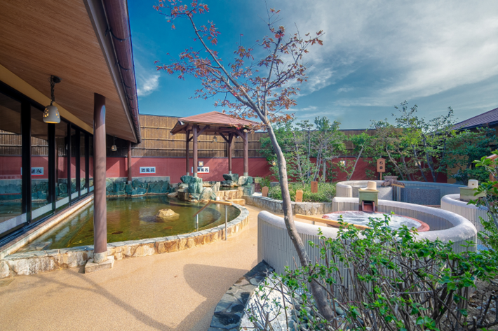 開放的な露天風呂で非日常なくつろぎのひと時を。