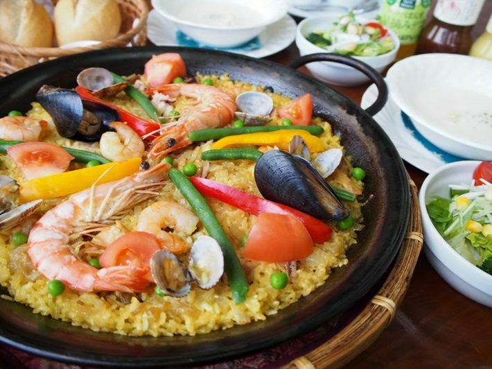 地元の食材をふんだんに使ったパエリアや自家野菜のサラダなどがお楽しみいただけます。