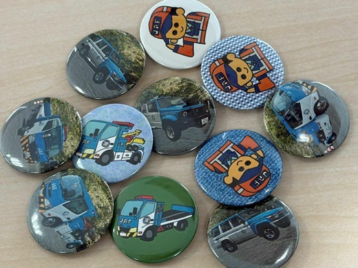 ①JAFアプリクーポン:オリジナル缶バッチの作製体験ができます。