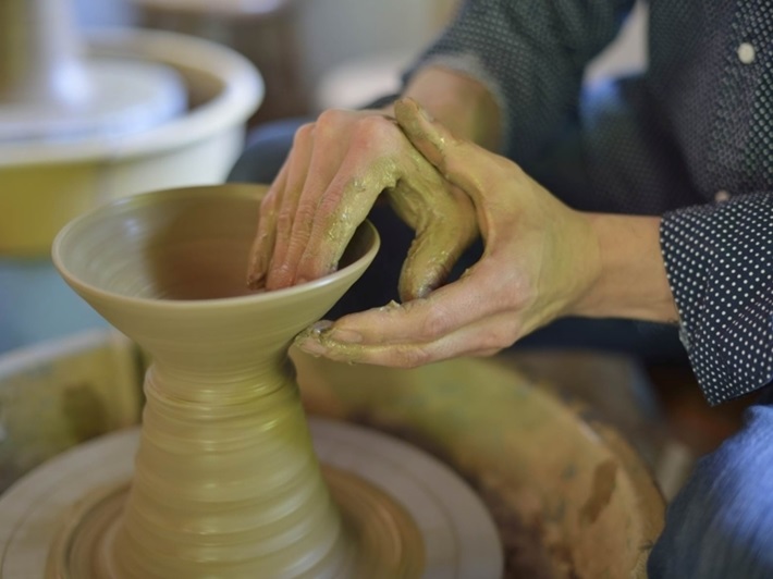 土の塊から自由に形を作り上げるこの体験は、先生とマンツーマンで進められるので初心者でも安心です。