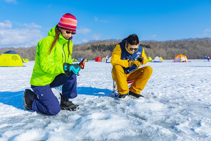 ポロト湖の冬の風物詩「ワカサギ釣り」※2026年度の開始日は、現在調整中