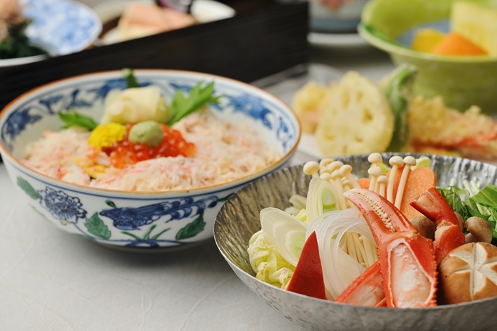 季節の食材と蟹の味わいを、日本料理ならではの多彩な調理法で楽しめる「花会席」です。