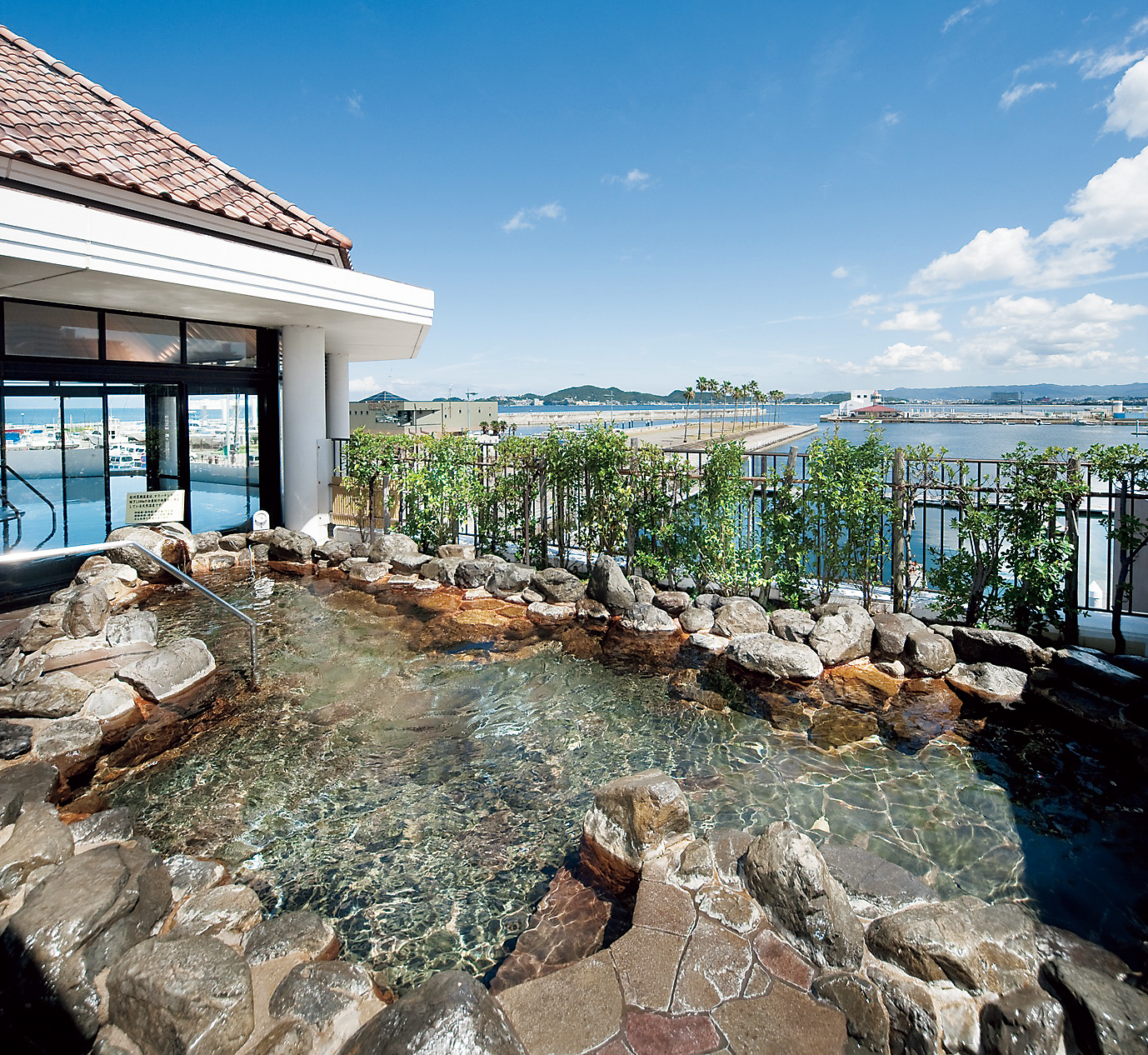 テーマパークやホテル、海鮮市場などさまざまな施設が充実する「和歌山マリーナシティ」内にある日帰り天然温泉施設。温泉は、地下1,500mの海底から湧き出ており、風光明媚な和歌浦の海を眺める絶景のロケーションが自慢。高濃度炭酸泉も人気の一つ。