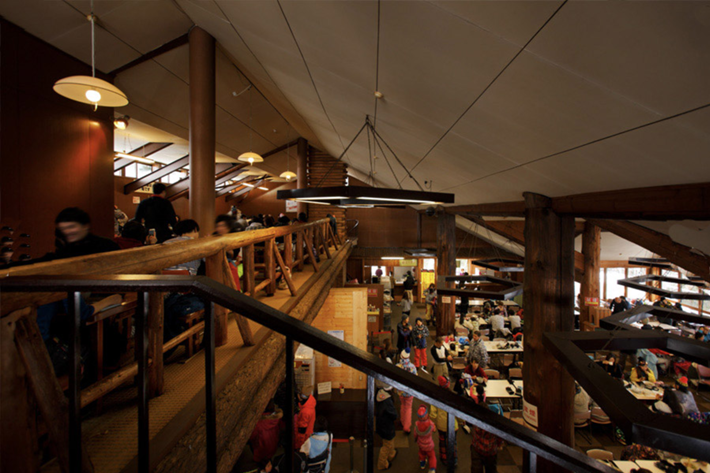 スキー場の中腹に食事処の「レストハウス」があります。席数450席でゆったりお食事できます。