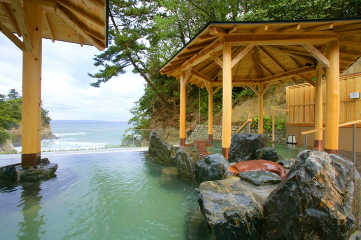 太平洋を望む五浦の絶景は、朝日に輝く海や夕暮れに浮かぶ漁火など、幻想的な風景が広がります。ホテル自慢の露天風呂は、松の枝越しに磯の香りを感じながら効能豊かな湯を堪能でき、心身を癒す贅沢なひとときを過ごすことができます。