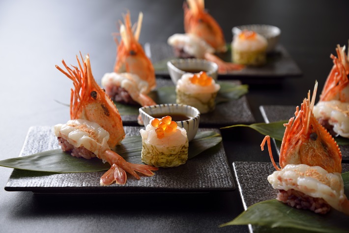ディナー人気No.1のサーロインローストビーフや、椿油で揚げる天ぷらのほか、お一人様一皿のチケット制メニューとして「牡丹海老の握りと白海老磯海苔巻き」など、贅沢な逸品が並びます。お食事の後は庭園で、桜色に染まる「夜桜雲海」など、夜ならではの幻想的な景色をご体感ください。