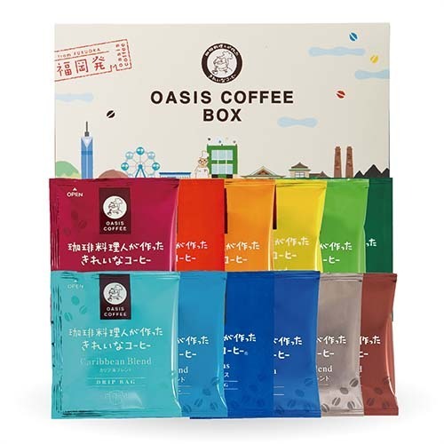 福岡県飯塚市内にある「オアシス珈琲」で大人気のドリップバッグ12種セットです。