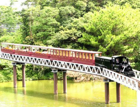 名護市にある動植物公園。沖縄の気候と風土を生かし、中南米・オセアニア・アフリカといった熱帯域の動植物を保温なしに飼育しています。フライングケージに放し飼いという自然さながらの展示方法のため、400種余りの植物や100種以上の動物たちと、垣根なく触れ合えます。