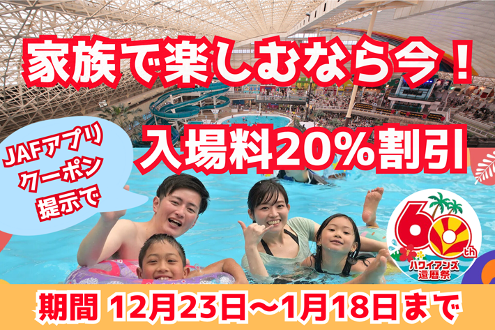 JAF会員入場料割引!! (大人・小学生・幼児20%割引)