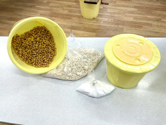 この体験教室では、1セットにつき3kgの加賀みそを仕込み、樽に入れた状態でお持ち帰りいただけます。