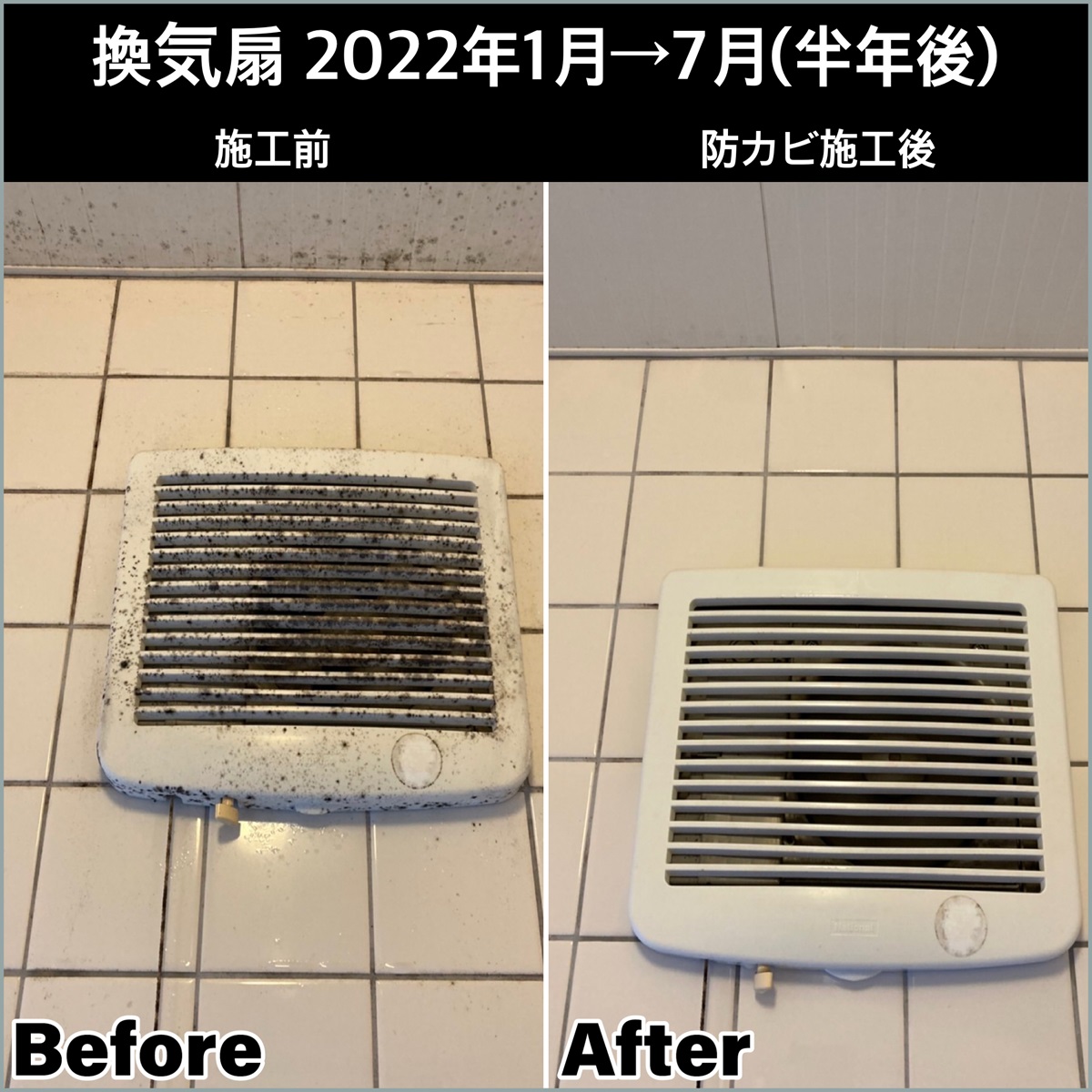 施工後は、約6カ月前後の防カビ効果が期待でき、 表面に汚れが付きにくくなるため、 普段のお手入れも拭き取り中心で済みます。