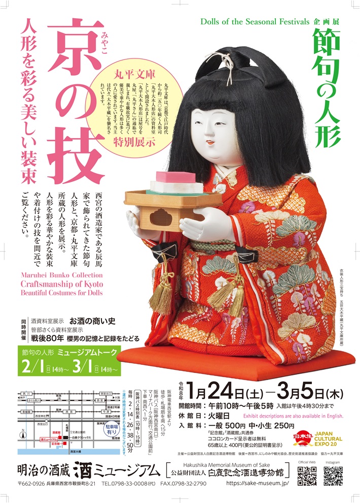 酒ミュージアム(白鹿記念酒造博物館)「節句の人形 丸平文庫特別展示:京の技 人形を彩る美しい装束」入館チケットを抽選で5組10名様にプレゼント