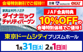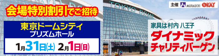 家具・インテリアの専門店『村内ファニチャーアクセス』が2026年1月31日(土)、2月1日(日)の2日間・東京ドームシティ プリズムホールで「家具インテリアダイナミックチャリティーバーゲン」を開催いたします。