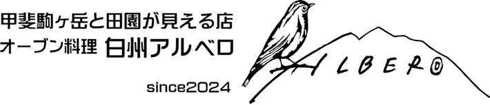 白州アルベロは、南アルプスと八ヶ岳の麓に位置し、南アルプスの名峰「甲斐駒ヶ岳」と田園を望みながら食事ができるお店です。