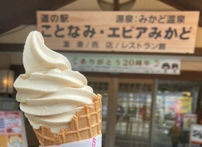 エピアみかど では、温泉利用者に大人気のスイーツ 「きなこソフト」 を販売しています。