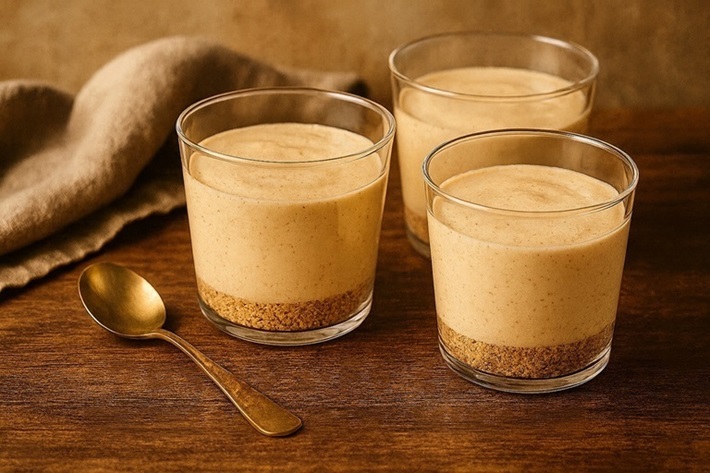 上層はなめらかにとろける「きなこレアチーズムースケーキ」。