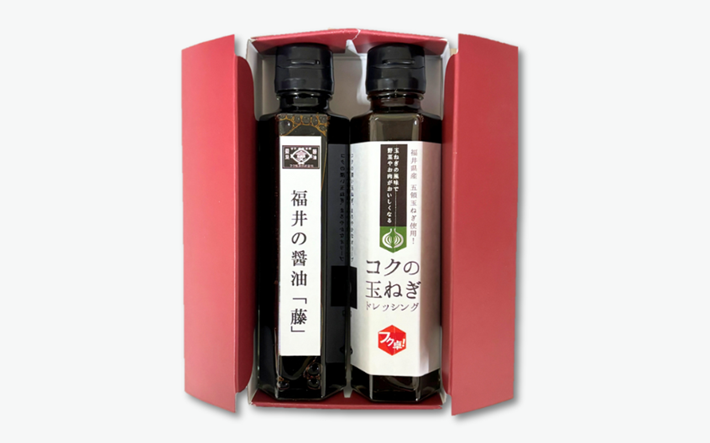 「コクの玉ねぎドレッシング」は、コク深い福井県産の五領玉ねぎとまろやかなオリーブオイルを使用したドレッシングです。醤油が味のバランスを整え、サラダ、生野菜はもちろん、肉料理ともよく合います。また、福井名物の焼いた厚揚げに合わせるのもおすすめです!