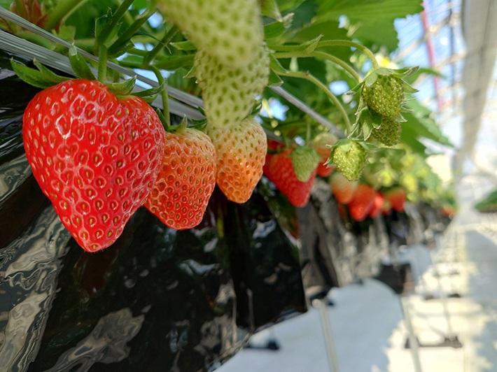 富山の寒い冬を乗り越えた赤く熟した完熟いちごが45分間食べ放題!