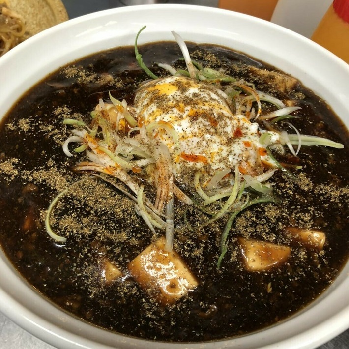 ひき肉や豆腐の甘味が溶け込んだとろみのあるスープに麺が絡んで、食べ進めると汗が出て爽快な後味が特徴。
