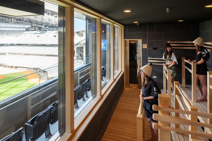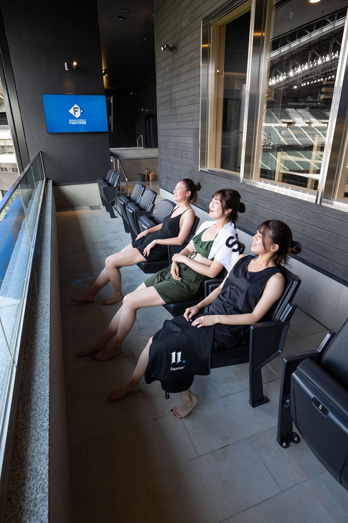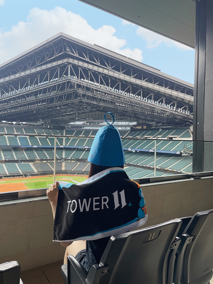 エスコンフィールドHOKKAIDO内にある「tower eleven onsen & sauna」世界初、フィールドを目の前にしながら温泉やサウナを楽しめる施設です。
