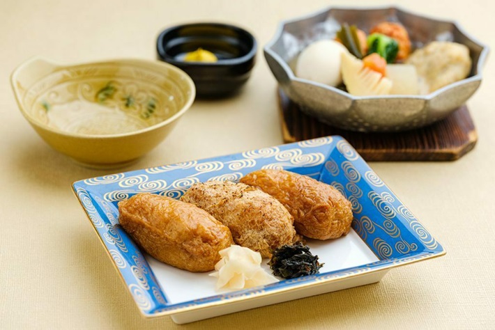 ②昼食「お稲荷セット+甘味+ドリンク」 @名水甘味 且座