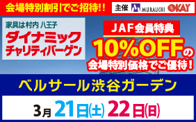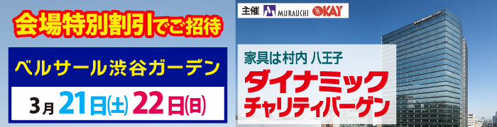 家具・インテリアの専門店『村内ファニチャーアクセス』が2026年3月21日(土)、3月22日(日)の2日間・ベルサール渋谷ガーデンで「家具インテリアダイナミックチャリティーバーゲン」を開催いたします。