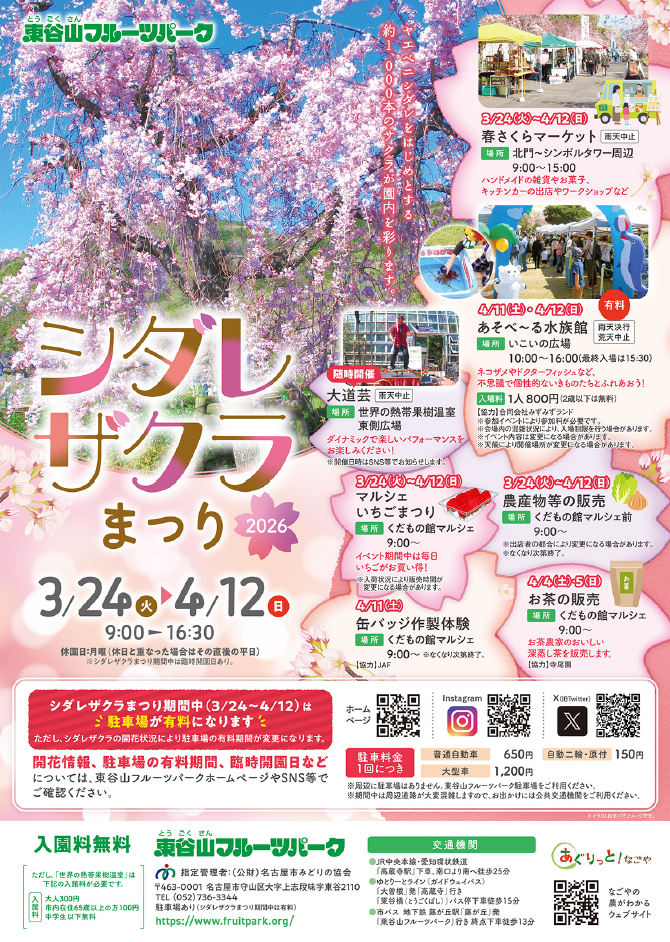 「東谷山フルーツパーク シダレザクラまつり」にJAFブースを出展します。