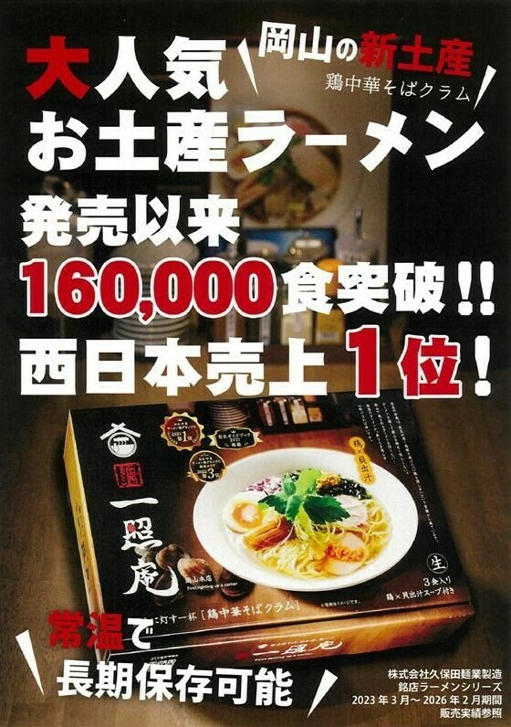 西日本のお土産ラーメンの中で、1番売れているラーメンとのこと!※2023年3月~2026年2月期間