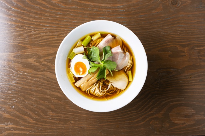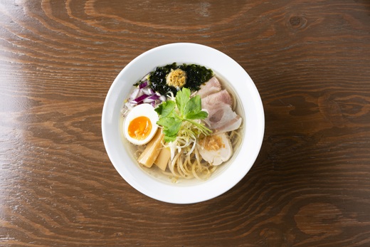 一照庵自慢の鶏スープに、ハマグリ、アサリ、しじみの出汁をブレンド。香味油は芳醇な香りのホタテ油。