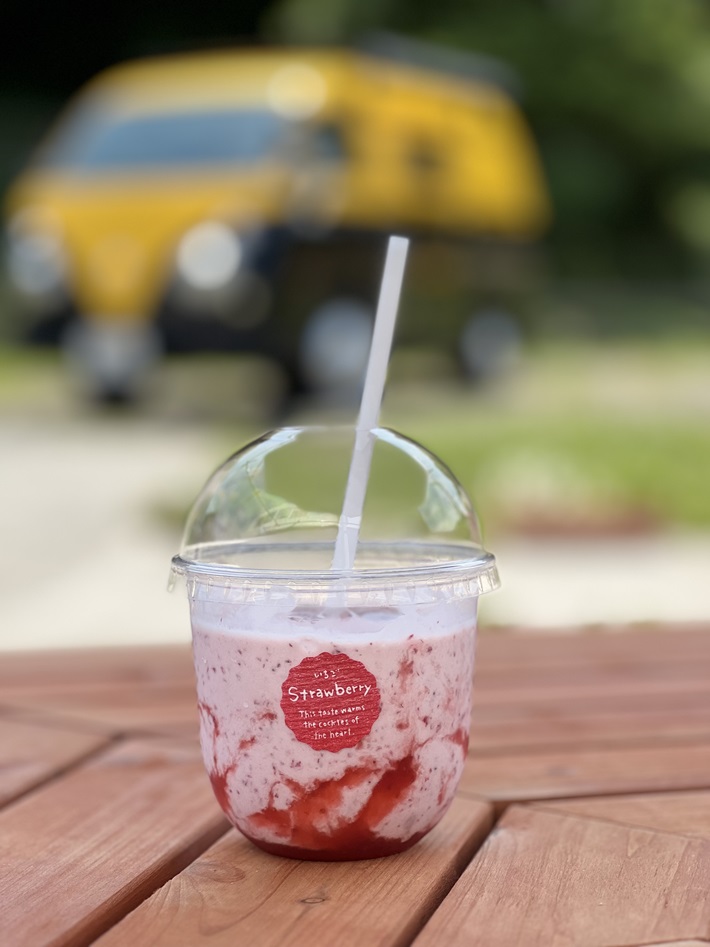 山田みつばち農園で採れたいちごを贅沢に使った、ミルクのまろやかさといちごのつぶつぶ食感を楽しめる一品。