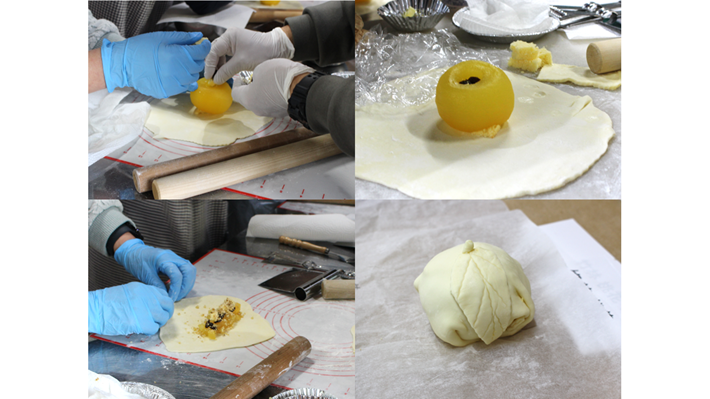 本イベントでは「丸ごとアップルパイ」と「ミニアップルジャムパイ」の2種類を作ることができます。焼き上がるまでの待ち時間は、優雅なティータイム。アップルパイまたはタルトを選んで、りんごジュースなどのドリンクをお楽しみください。さらに、りんごの花が咲いていれば記念撮影も可能です。