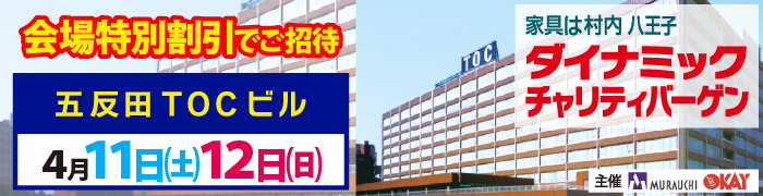 家具・インテリアの専門店『村内ファニチャーアクセス』が2026年4月11日(土)、4月12日(日)の2日間・五反田TOCビル13Fグランドホールにて「家具インテリアダイナミックチャリティーバーゲン」を開催いたします。