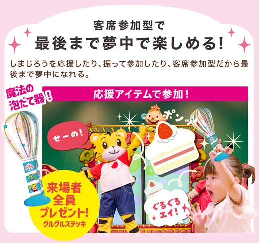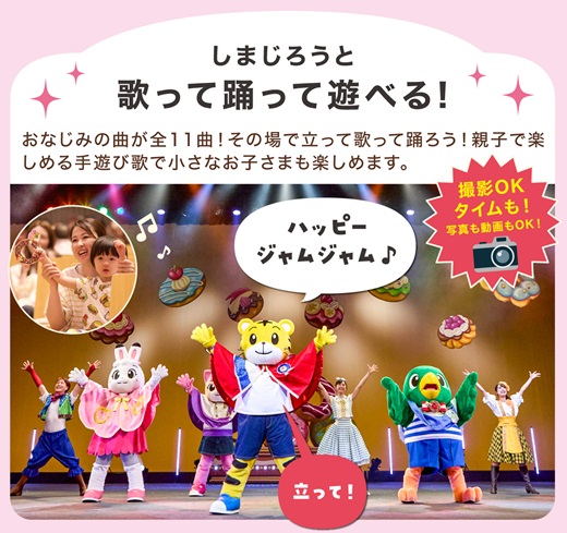 しまじろうと一緒に歌・ダンスやゲームなどのアクティビティで思い切り遊ぼう!客席参加型コンサートだから小さいお子さまも最後まで夢中で楽しめます。親子で生の舞台ならではの感動体験を!