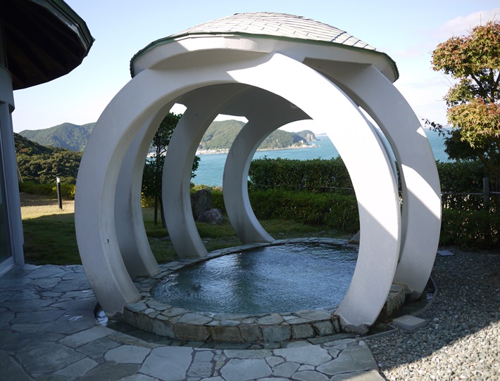 室戸阿南海岸国定公園の中でも絶景の蒲生田岬。そんな景色を眺めながら入る温泉が天然温泉「かもだ岬温泉」です。