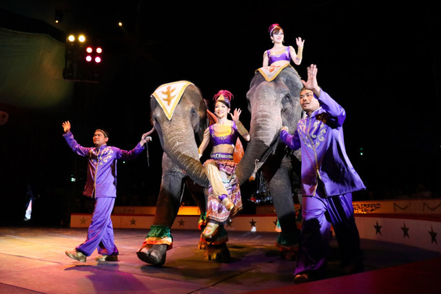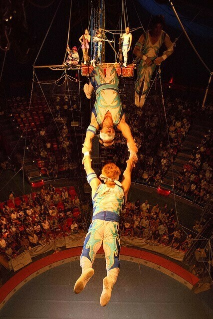 かわいい象さんのショーや、夢のダブル空中ブランコショー、世紀のオートバイショーなど…。