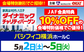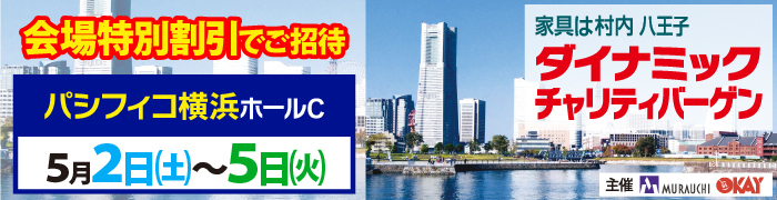 5月2日(土)から5月5日(火祝)の4日間・パシフィコ横浜・ホールCで「家具インテリアダイナミックチャリティバーゲン」を開催いたします。