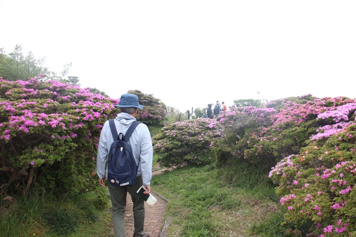 10:30 霧に包まれた神秘的な雰囲気のなか、ミヤマキリシマ観察会がはじまりました!