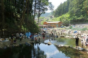オートキャンプ場が隣接しており、嘉瀬川では釣りも楽しめます。