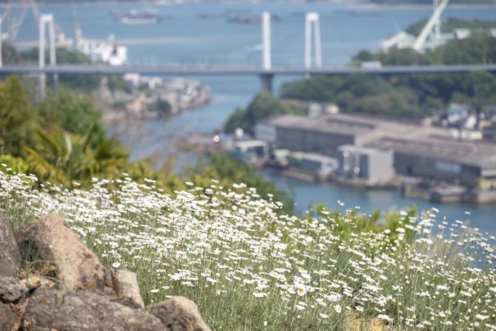 4月上旬に「日本さくら名所100選」に選定された桜、5月上旬には除虫菊やツツジが見頃を迎える。