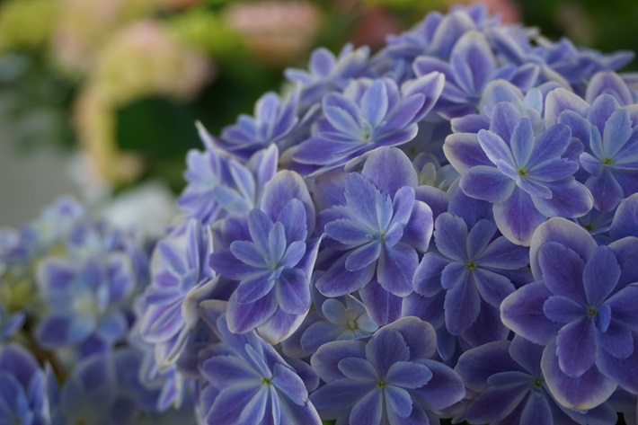 GWにはアジサイフェアを開催。島根県オリジナルアジサイ「万華鏡」をはじめ、多種多彩なアジサイを一同に展示する。