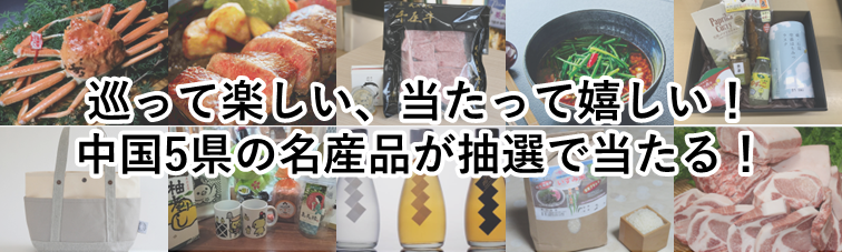 観光地めぐりコースのフルコンプリート賞では、「中国5県の豪華賞品」からお好きな1点を選んで応募可能!